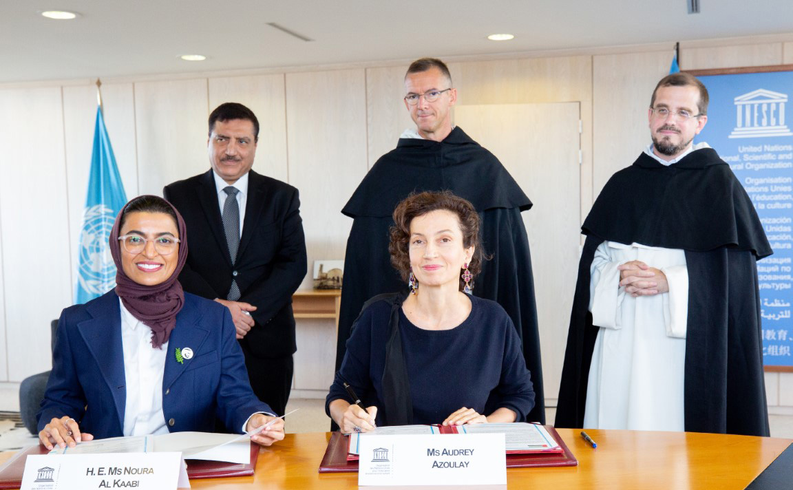 أعلنت دولة الإمارات العربية المتحدة ومنظمة الأمم المتحدة للتربية والعلم والثقافة /اليونسكو/ اليوم تجديد تعاونهما ضمن مبادرة المنظمة لإستعادة المواقع التراثية والثقافية بمدنية الموصل العراقية والتي انطلقت تحت شعار “إحياء روح الموصل”، وكانت معالي نورة بنت محمد الكعبي وزيرة الثقافة وتنمية المعرفة وأودري أزولاي المديرة العامة لمنظمة اليونسكو قد التقيتا اليوم في مقر المنظمة بالعاصمة الفرنسية باريس، حيث جرت مراسم توقيع إتفاقية جديدة تخص المشاركة الإماراتية في جهود إعادة إعمار المعالم التاريخية في مدينة الموصل التي تعتبر محطات فارقة في مسيرة الحضارة الإنسانية.