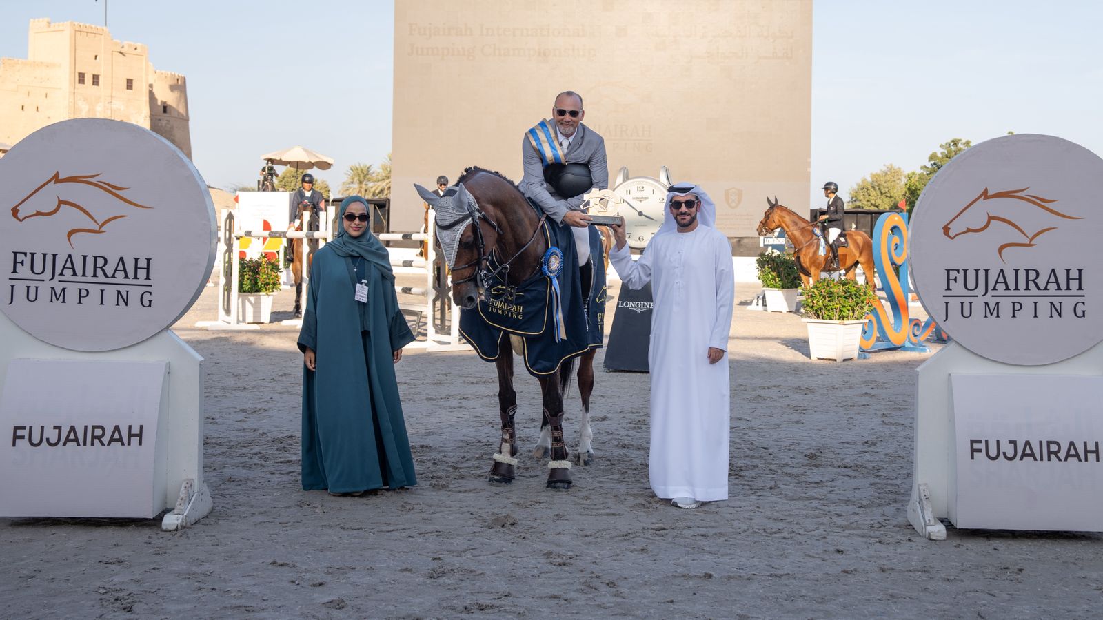 وشهدت الفئات الثلاث مراسم تتويج الفائزين بحضور السيدة مريم المطروشي نائب مدير دائرة المالية بالفجيرة، وسعادة الدكتور غانم الهاجري الأمين العام السابق لاتحاد الإمارات للفروسية، وسعادة سلطان محمد اليحيائي رئيس المجموعة الإقليمية السابعة في الاتحاد الدولي للفروسية، ورئيس لجنة قفز الحواجز في اتحاد الإمارات للفروسية والسباق.