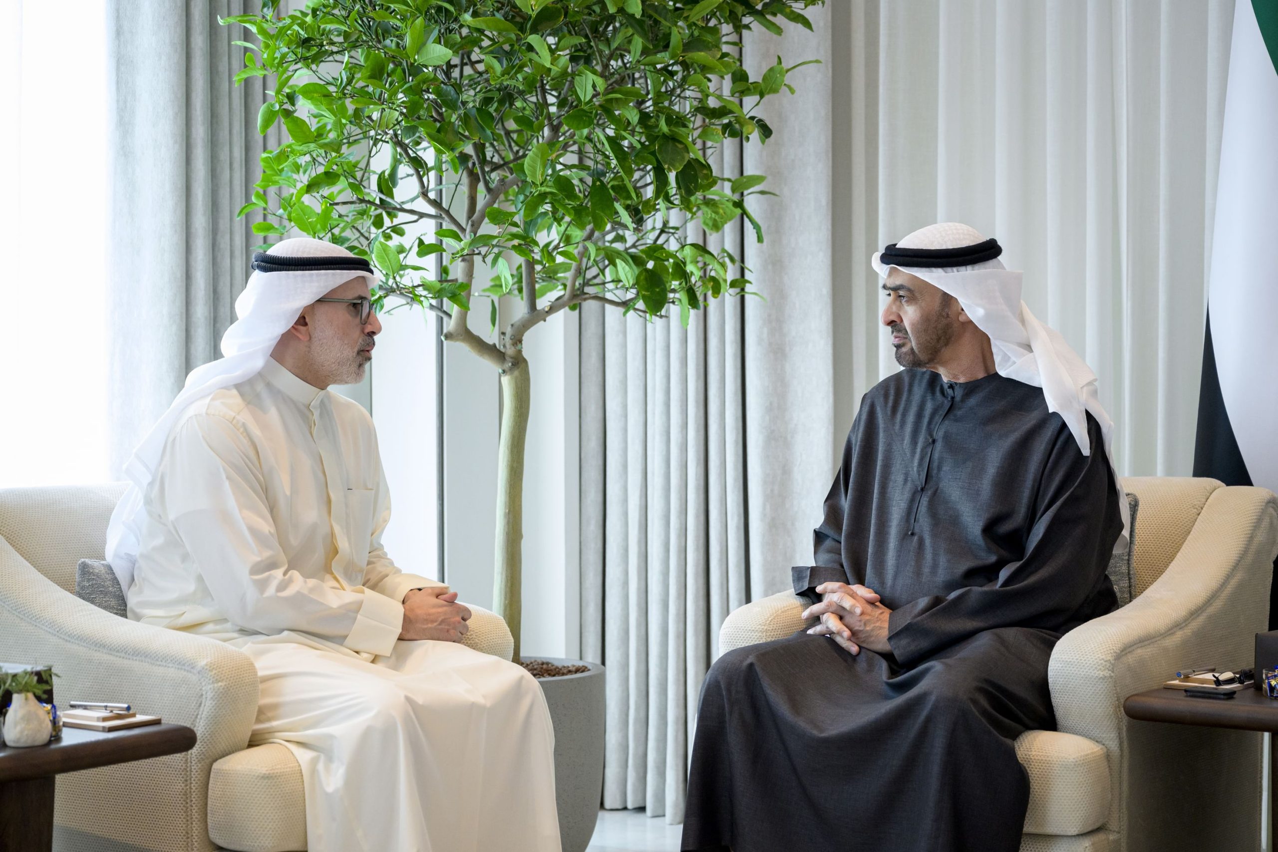ونقل معاليه إلى صاحب السمو الشيخ محمد بن زايد آل نهيان – خلال اللقاء – تحيات أخيه صاحب السمو الشيخ مشعل الأحمد الجابر الصباح أمير دولة الكويت وتمنياته لدولة الإمارات دوام الأمن والازدهار..فيما حمله صاحب السمو الشيخ محمد بن زايد آل نهيان تحياته إلى أخيه سمو أمير الكويت وتمنياته لبلده وشعبه الشقيق مزيداً من النماء والرخاء في ظل قيادته الحكيمة.